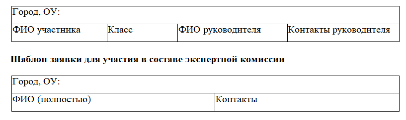 Шаблон для подачи заявки: