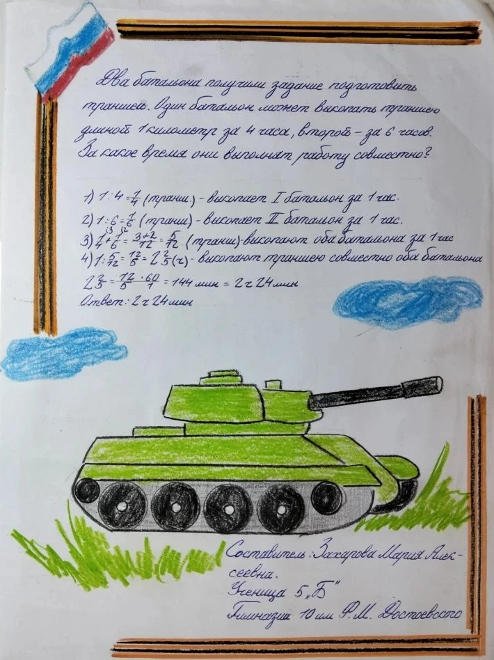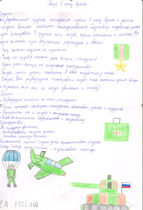 Эвристическая задача — это задача, решение которой предполагает самостоятельный поиск ещё неизвестных закономерностей, способов действия, правил. Такие задачи возбуждают активную мыслительную деятельность, поддерживаемую интересом, и способствуют раскрытию творческого потенциала. В преддверии Дня защитника Отечества учащиеся 5-9 классов занимались составлением, решением и оформлением задач по военной тематике.