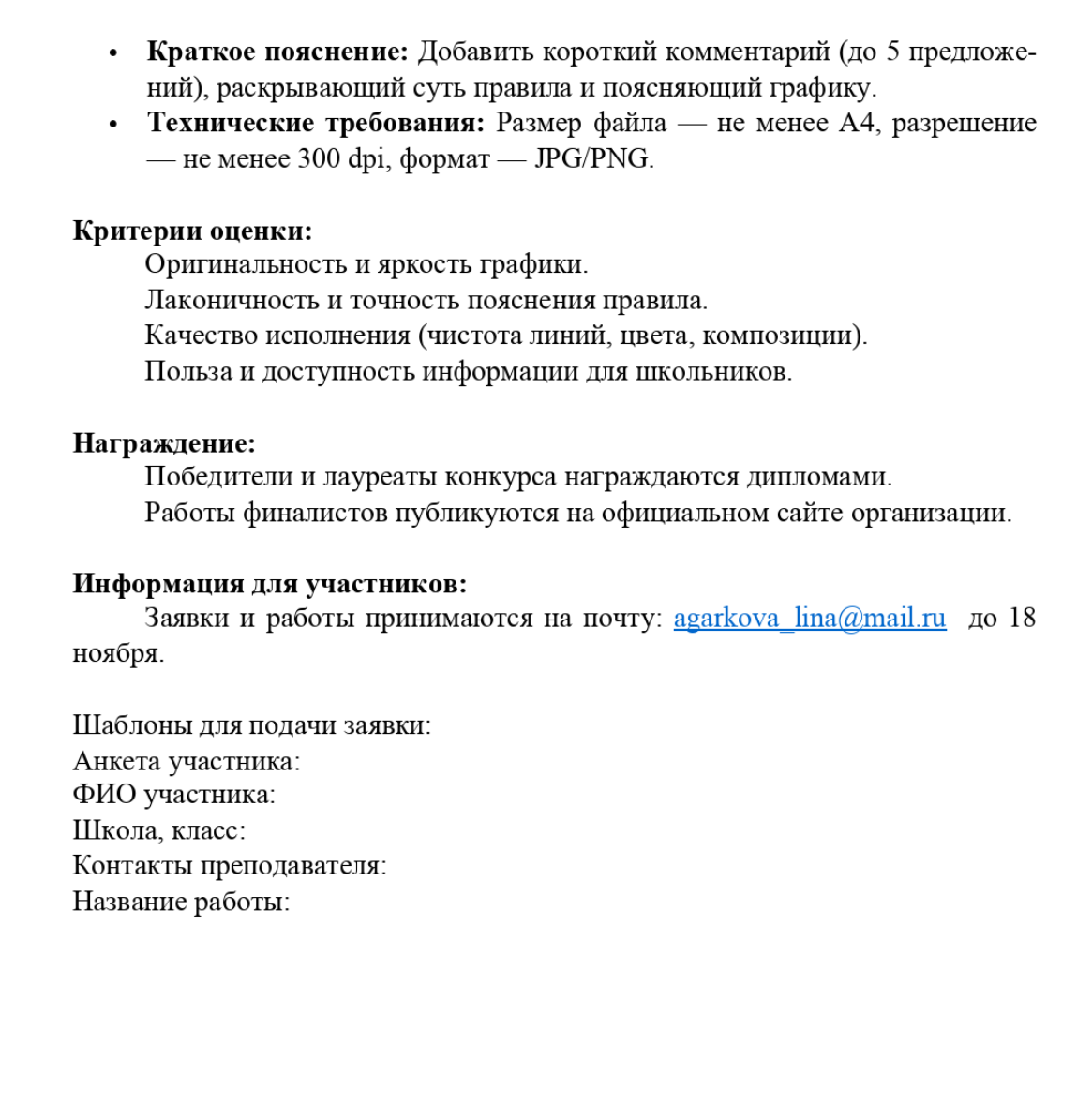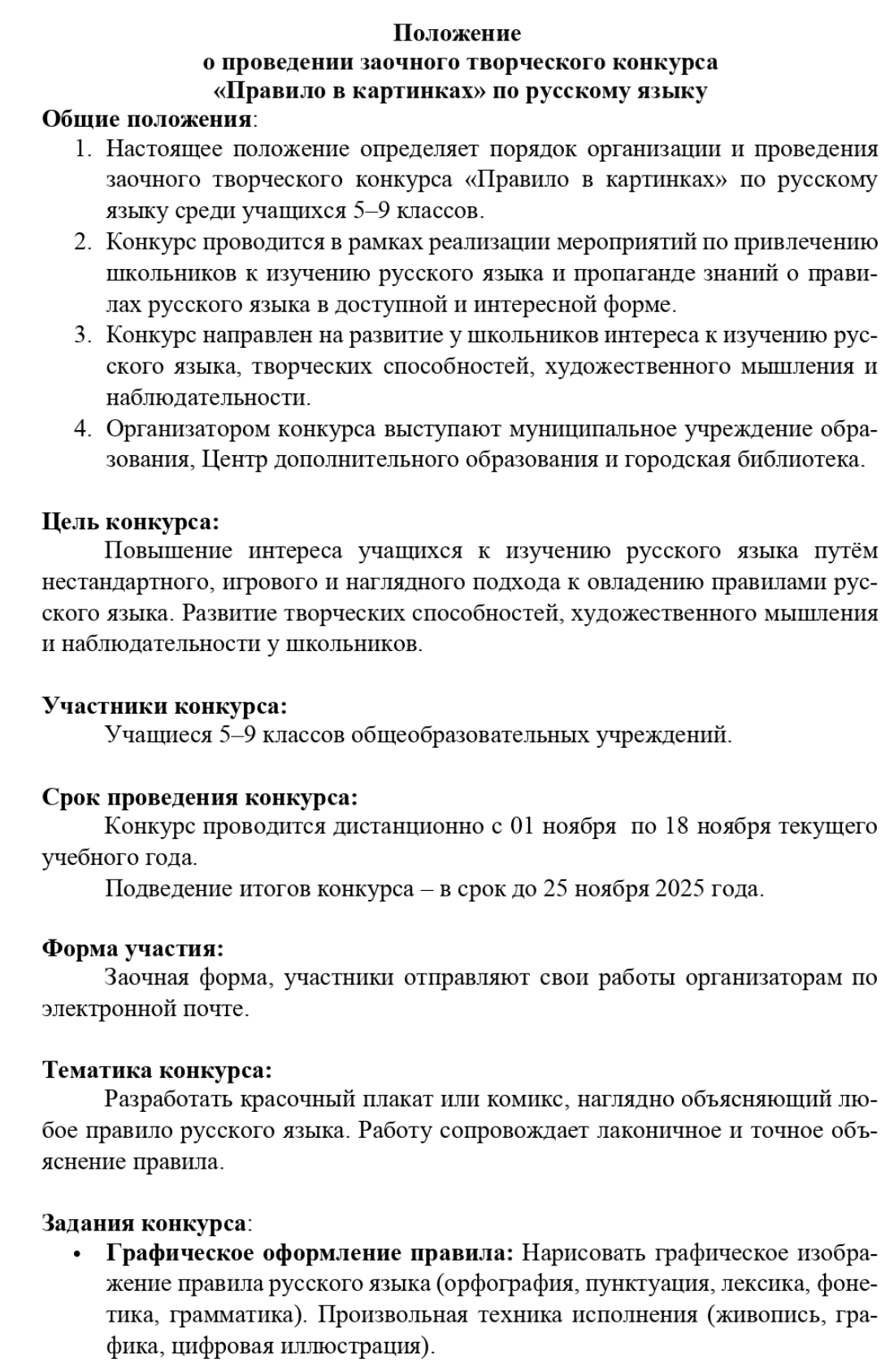 Положение о проведении заочного творческого конкурса «Правило в картинках» по русскому языку